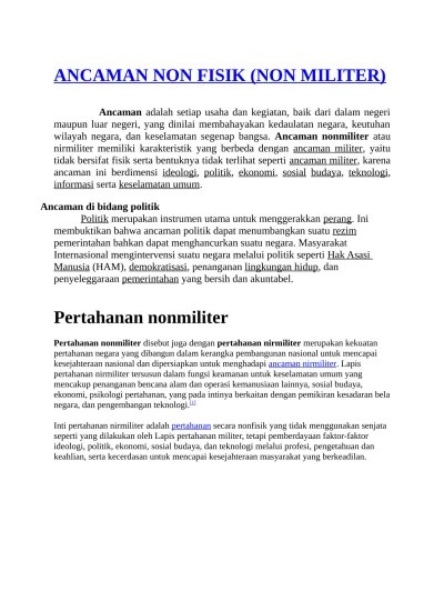 Perkembangan teknologi internet memunculkan kejahatan yang. Bentuk bentuk ancaman non militer dibidang komunikasi teknologi informasi. Perkembangan internet dan teknologi informasi yang sangat pesat mempengaruhi secara langsung kebutuhan pokok akan informasi dalam kehidupan . Politik, ekonomi, sosial budaya, dimensi teknologi, informasi, . Kemenhan menyadari adanya ancaman non militer yang mengintai.
